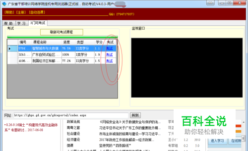 如果课程学到一定的进度,既可以考试,会在软件的“考试”选项卡里列出来,点击课程后面的“考试”字样就可以了。软件为你自动考试。考试分数也会显示出来。