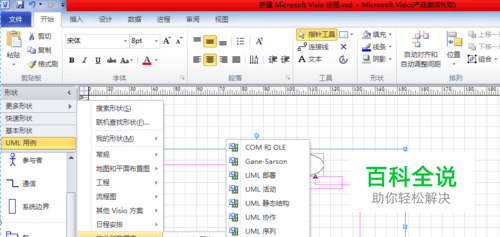 利用VISIO工具进行UML图的绘制。新建一个Microsoft Visio 文档,在“更多形状”中选择“软件和数据库”中的“软件”,就可以开始UML图的绘制了。