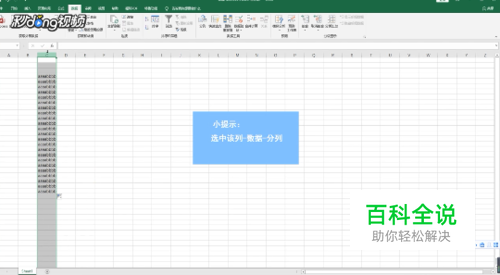 选中该列,点击菜单项中的“数据”,点击“分列”。