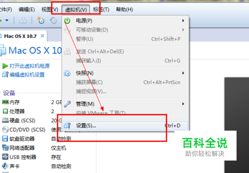 单击菜单栏中的虚拟机选项。然后单击选项设置。或者直接单击编辑虚拟机。