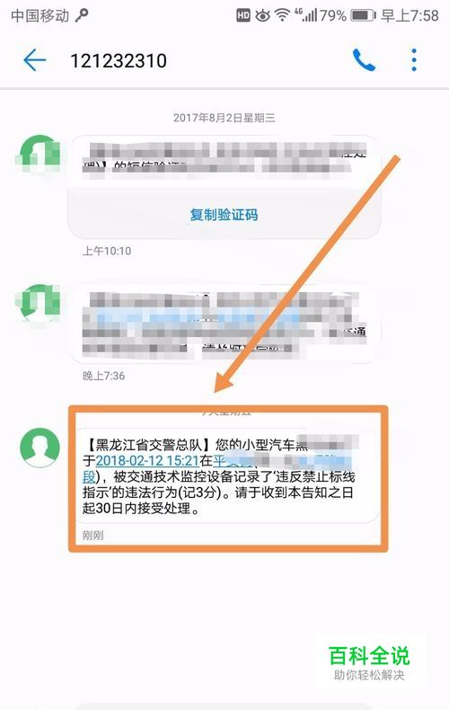 当收到交警部分发送的违章处理通知短信时,先查看违章详情,短信提示扣3分,要求在30天内处理。