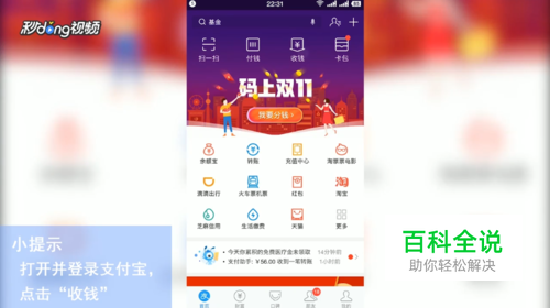 打开支付宝,点击“收钱”。