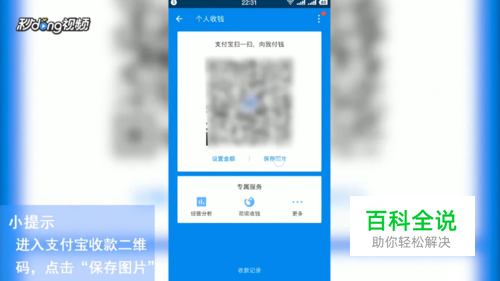 进入支付宝收款二维码,点击“保存图片”。