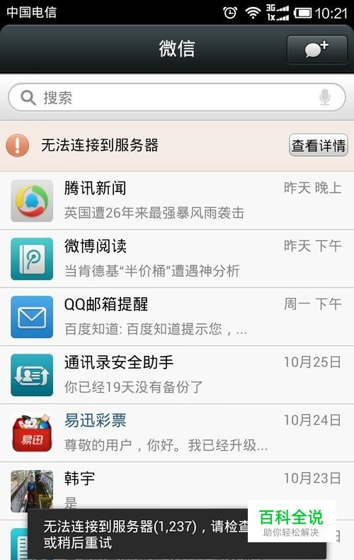 检测无线网络是否真的连接不上:最简单的办法,就是打开微信,随便看个信息或者打开某个公众号,就会发现一直在连接,过一会就提示,wifi网络有问题。(这里因为保护个人隐私,随便用个网络上的图片,表达个意思)我们就可以确认,网络是真的出了问题。