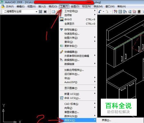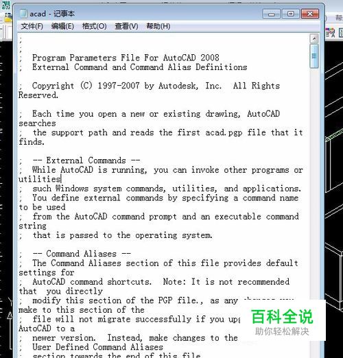 打开CAD找到快捷键“记事本”:工具→自定义→编辑程序参数。