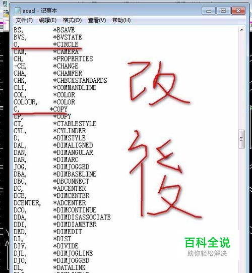 记事本下拉找到全部默认的快捷键,然后修改。改后记得保存哦,最后重启CAD!慢慢享受造图的乐趣吧...