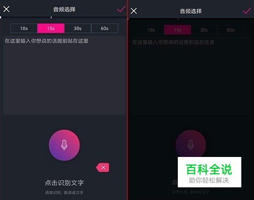 设置好要制作视频的时长,可以录音,也可以导入音频文件,导入视频会帮你分离出音频,你还可以自己选择让音频从哪里开始,点击对勾合成,系统会智能识别生成为文字视频,跳到预览页面。