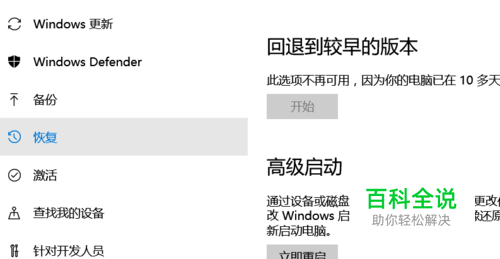 选择恢复,以及右栏的立即重启