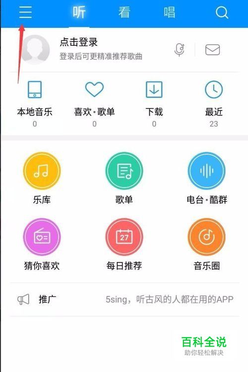 首先我们先打开酷狗音乐,打开之后单击左上角的三横图标。