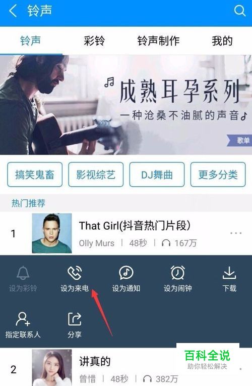 单击之后会下拉选项,此时我们单击”设为来电“按钮。