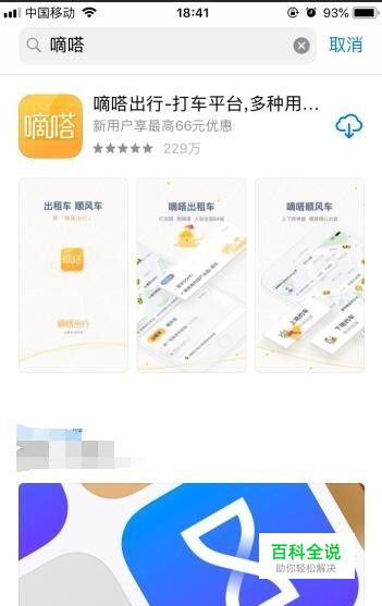 首先,我们进入手机应用商店,搜索“嘀嗒出行”。