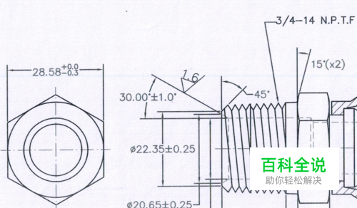按照下图所示的最终结果,该修剪的修剪,该删除的删除。 其实画到这一步,主要标注上螺纹尺寸3/4-14NPTF就可以了,但是有的工人可能没学过读图,看不懂,那么为了迁就他们,有时候我们就得继续往下画,画的更形象一些。