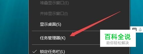 在任务栏空白位置点击右键,在弹出菜单中点击任务管理器菜单项