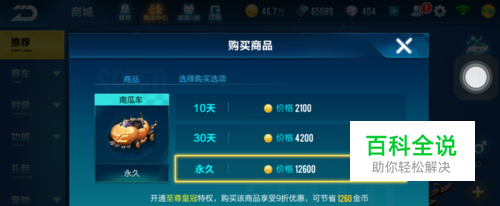 首先来看下,这款车怎么获得,直接在商场中就可以找到了,并且这款车是用金币获得的,12600金币就可以获得永久,还是有很大的收藏价值的。