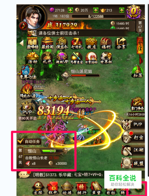 开启自动打怪过任务,能快速升级,还得很多材料元宝,开启自动打怪时要把技能栏翻到第二页才自动放技能的,如图: