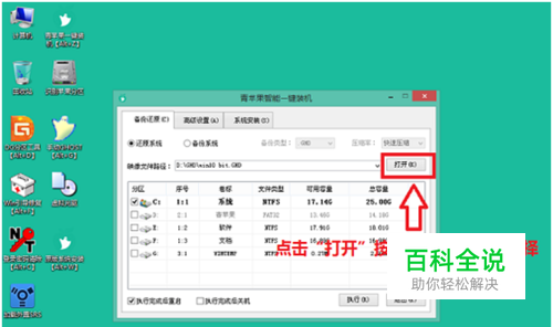 进入win8PE系统后,桌面上的青苹果pe装机工具会自动打开,我们在窗口中映像文件路径处寻找存放于u盘中的win10系统镜像包,等待工具读取并提取出对应所需的系统文件后,在下方磁盘列表中选择一个分区做为安装系统所使用,一切选择完成后点击执行,在新弹出的提示框中再次点击确定即可,如图所示:
