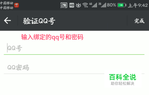 输入要绑定的qq号和密码,点击右上角的“完成”。