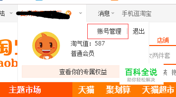 打开一个浏览器搜索淘宝网,进去登录以后,左上角会员名,鼠标放那儿,会出现一个账号管理。