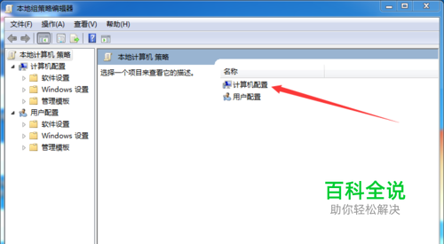 确定后 弹出“本地组策略编辑器”如图 打开计算机配置