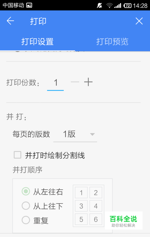 设置页面范围和打印范围,份数和顺序等等