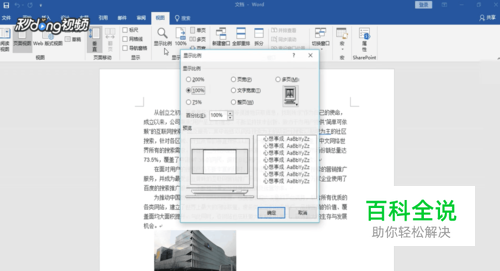 如果取消双页显示,点击视图界面的显示比例按钮,弹出显示比例对话框。