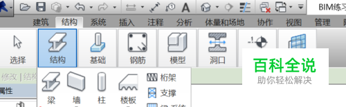 我们在新建的“建筑模型”里面,找到“结构”菜单,点进去,找到“梁”按钮。