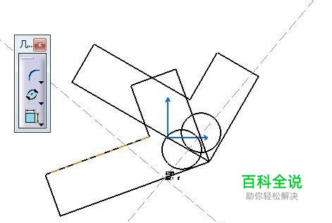 此时停留在制图模块,将工具栏一项一项拖出,可以找到图示对称图标,点击小三角展开后,其中有旋转,使用此工具,即可对已确认的图形,进行任意旋转。
