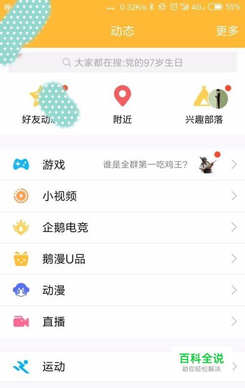 首先,我们先清理一下手机内存,让手机更流畅,防止斗地主卡住了。打开手机QQ,进入页面,如下图所示。然后点击动态。