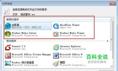 在打开的程序选择窗口,我们可以看到,有推荐的程序和其他程序。