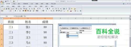 二次排序怎样操作:第一次排序后,选择添加条件,在次要关键字中输入相应内容,比如选择班级,设置好排序依据和次序,点击确定。