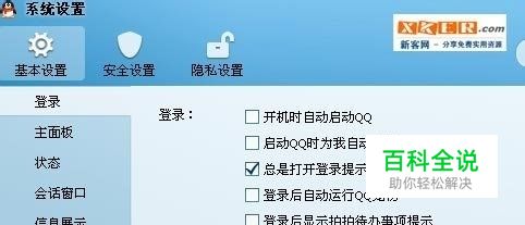 第二步,将“登录后显示腾讯网-我的资讯”前面的对勾去掉即可。这个方法已经经过新客网小编亲自验证了,很有效,再也不用被弹出的腾讯新闻所骚扰了。