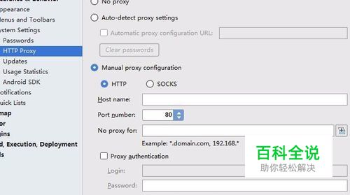 由于下载sdk都是进行访问谷歌服务器的,那么就需要对网络进行代理的,直接进入到了HTTP proxy,就可以host name中进行添加代理地址,如果有账号和密码。