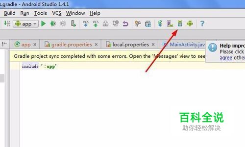 进行打开Android studio的开发应用的工具,进入到Android studio的界面中之后,进行点击菜单中的“sdk”的选项。