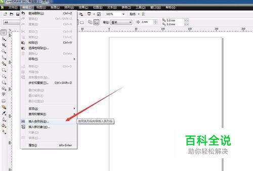 首先打开CDR软件,然后新建一个页面,尺寸可以任意设定。 然后我们在编辑菜单中,找到插入条形码的选项。 这样就会打开一个对话框,这样要求我们输入条码,然后我们输入完成后就可以生成条形码了。 条形码的数值是客户提供的。