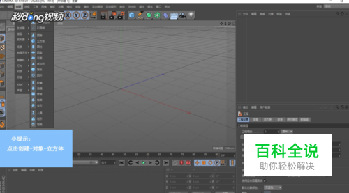 打开C4D,点击“创建”,点击“对象”,点击“立方体”。