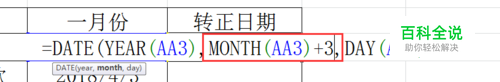 那么根据公司要求是入职后三个月转正,那么我们只需要在月份上加3即可 如图