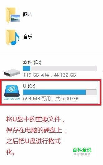 步骤二:重要文件保存以后,并且文件中唯有病毒,然后在电脑上以管理员的将U盘进行格式化处理,并且把U盘格式化为NTFS格式,操作方法如下图所示。