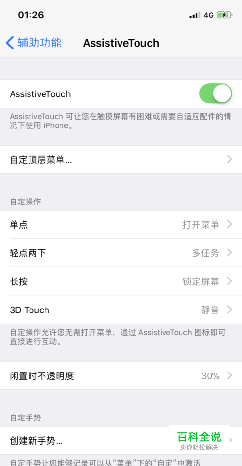 顶层菜单设定好后我们再来看一下具体AssistiveTouch支持哪些不同的操作模式:单击?轻点两下?长按?3D Touch? 好,第一个单击,你想在桌面单击AssistiveTouch以后实现怎么的功能,就在此项选择,不过不建议修改哈,为了保持使用习惯。当然有特殊的需求例外,比如:你最常用到截屏,你就可以选择设置成单击即“截屏”、最常用 Siri、最常用控制中心等等,本人保持了原有的不变。大家根据自己需求来即可。同样轻点两下、长按、3D Touch 都是用同样的方法设置即可,根据自己的习惯组合不同的操作模式对应不同的功能。本人的如下图:单击-打开菜单、轻点两下-多任务栏,用来代替向上滑停顿;长按-锁定屏幕,用来代替锁屏键;3D Touch-静音,用来代替左侧静音按键。有没有发现用好AssistiveTouch基本上就用不到物理按键啦?(可能需要记一下哦,要不然经常会忘的。)