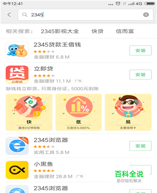 在手机应用商店中搜索【2345】浏览器,点击下载并安装。