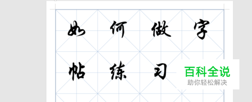 如图所示,word会自动添加书法字帖的格式,这里可以直接进行书写,将你想要练习的字写入到下图中。