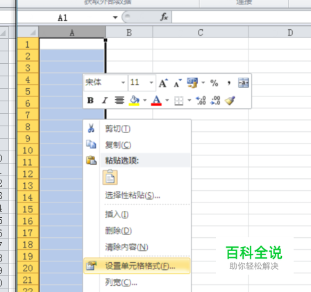 Excel中只要数值超过11位就会按科学计数法来显示,而对于数值型文本就不存在这个问题,了解了这个情况我们只要让身份证号按数值型文本来表示就可以了。假设在A列输入数据,那就选中A列,右键单击设置单元格格式,此时会弹出一个对话框,选择“数字”—“文本”,确定即可。