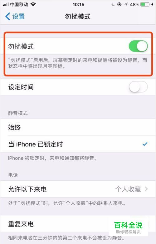 开启“勿扰模式”: 在“设置”中找到“勿扰模式”,并点击进入,将“勿扰模式”开启,开启后手机的顶栏会有一个小月亮的标识。