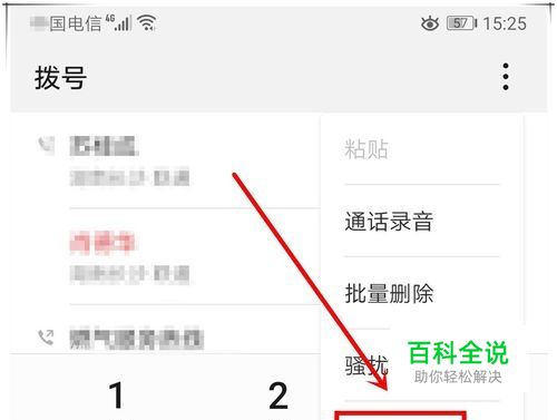 再在拨号,点击右上角的“三个竖点”按钮,在弹出菜单中选择“设置”选项。