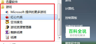 首先,在Win7系统下,我们点击开始菜单,在所有程序里面可以找到游戏,里面有纸牌等游戏,如下图所示。