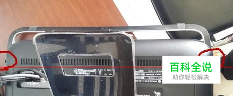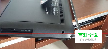3、在一体机的底座中间有一个活扣,在螺丝完全扭开的情况下,用力按下这个活扣,机箱下部会稍稍弹起一点