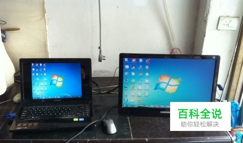 拿一个微接线,就是组机跟显示器连接的那根蓝色的线,一头插在显示器上,一头插在笔记本微接头上,我的是win7,win7为例