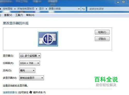 多显示器里面有四个选择,1个是复制这些显示,1个是扩展这些显示,1个是只在1号显示,1个是只在2号显示,1号代表的笔记本,2号代表的显示器