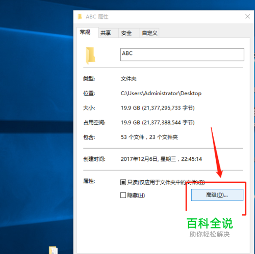 在打开的文件夹属性中的”常规“属性中,找到高级按钮。