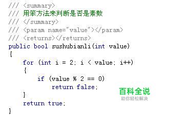 判断一个数是不是素数: if (sushu(Int32.Parse(tb_inputvalue.Text))) { MessageBox.Show(tb_inputvalue.Text + " 是素数"); } else { MessageBox.Show(tb_inputvalue.Text + " 不是素数"); }