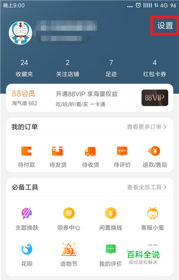 打开我的淘宝界面,在界面中找到并点击右上角的【设置】按钮。